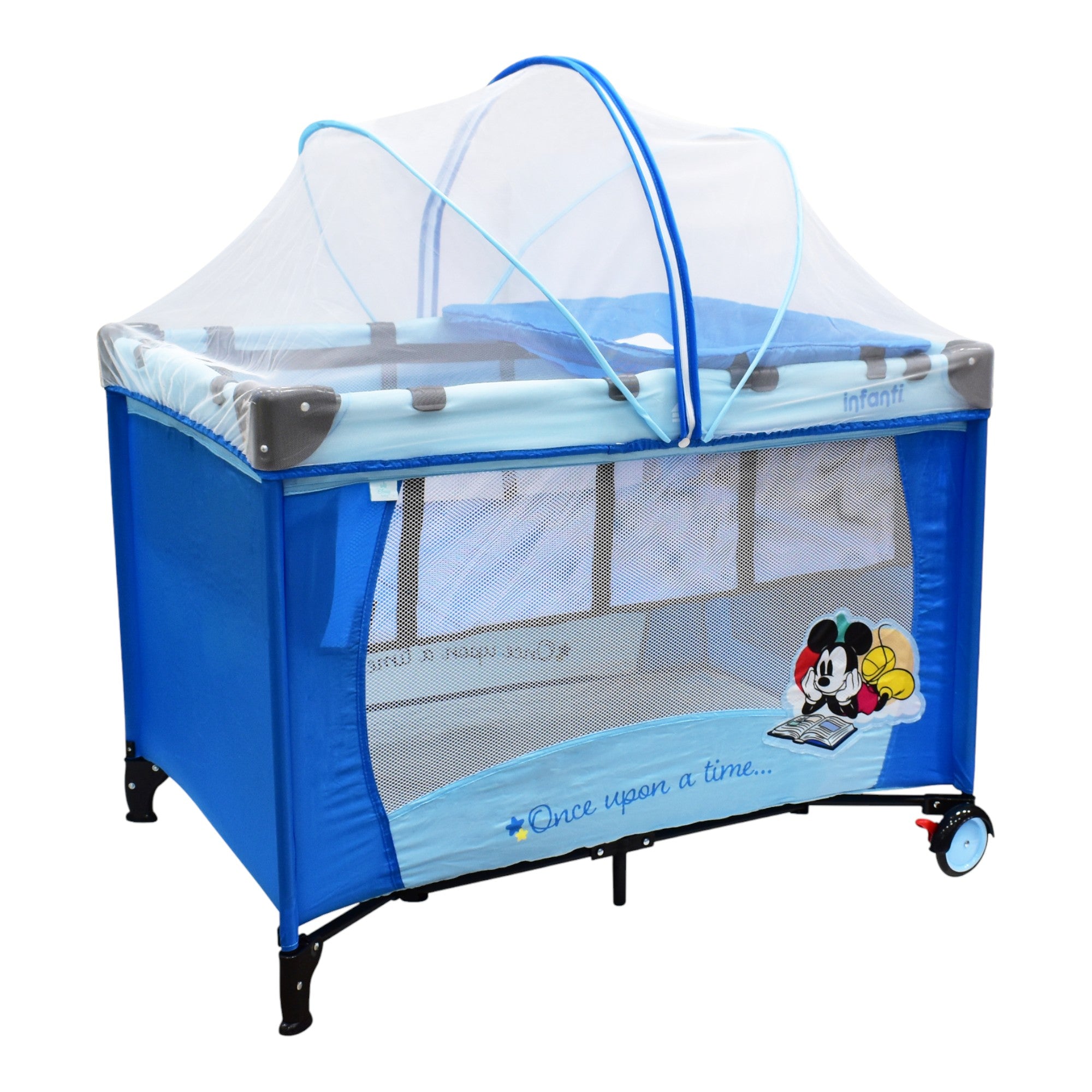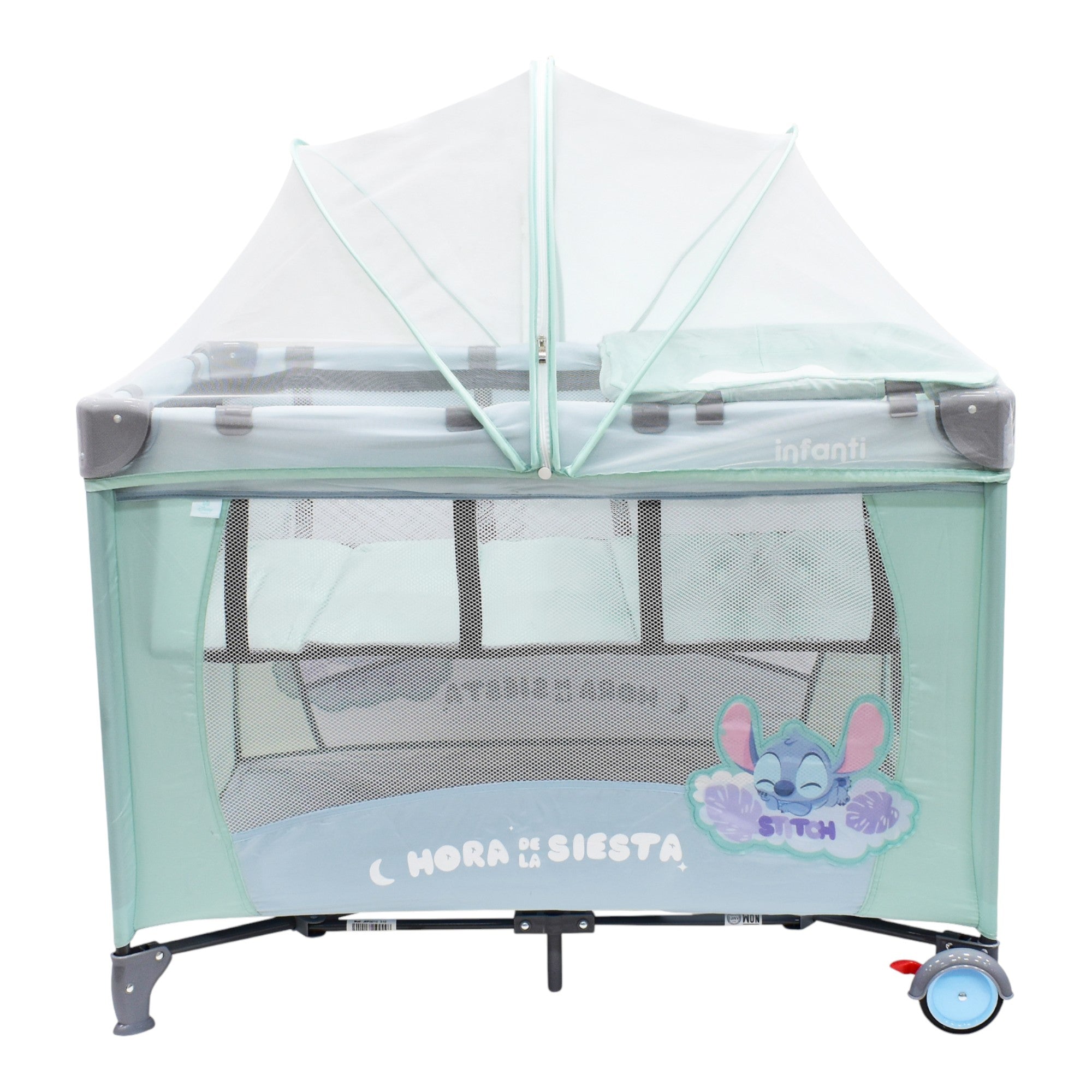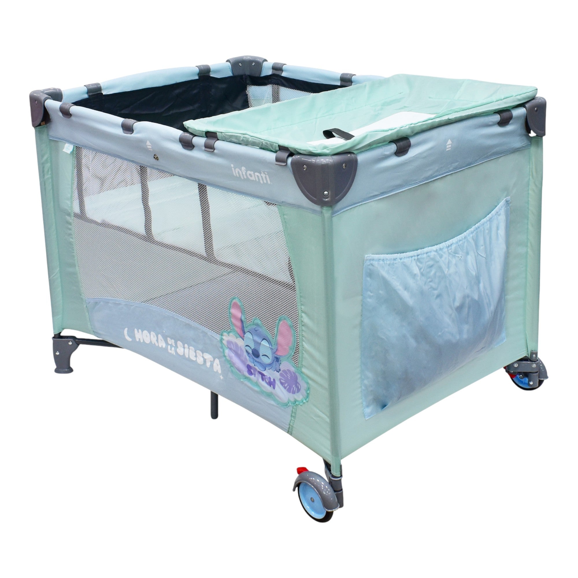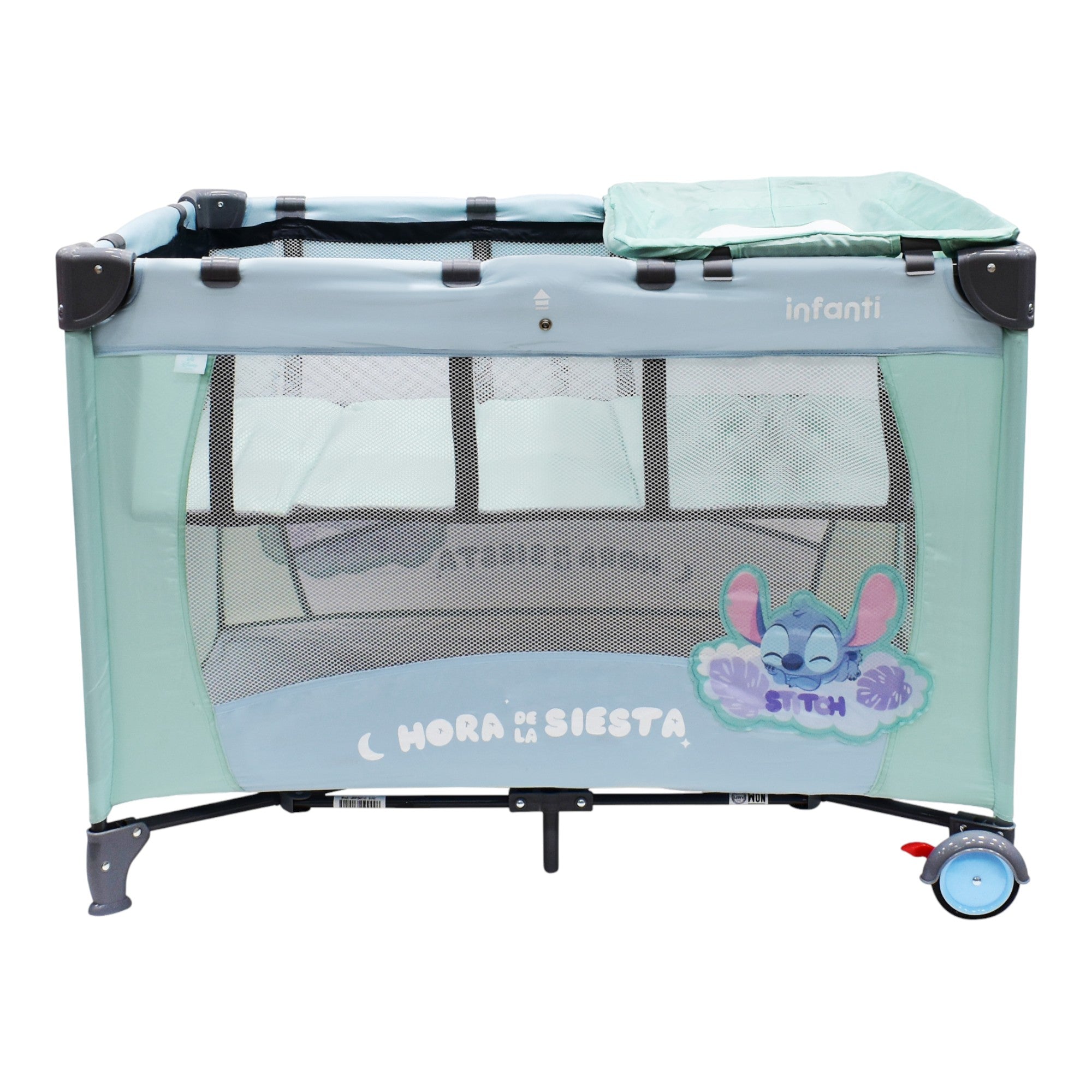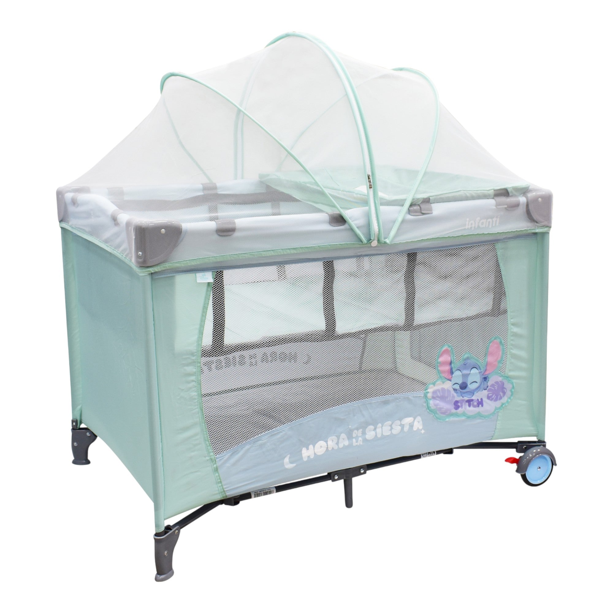 La Cuna de Viaje Disney es una excelente opción para brindarle a tu bebé un espacio cómodo durante tus viajes. Es fácil de armar, segura y adaptable. Cuenta con un cambiador desmontable, un mosquitero de lujo para proteger a tu bebé y una práctica bolsa para juguetes. Las ruedas con frenos garantizan su estabilidad y la bolsa de viaje facilita su transporte. Su estilo único, con los adorables diseños la convierten en una elección segura y cómoda que añade la magia de Disney al descanso de tu bebé.